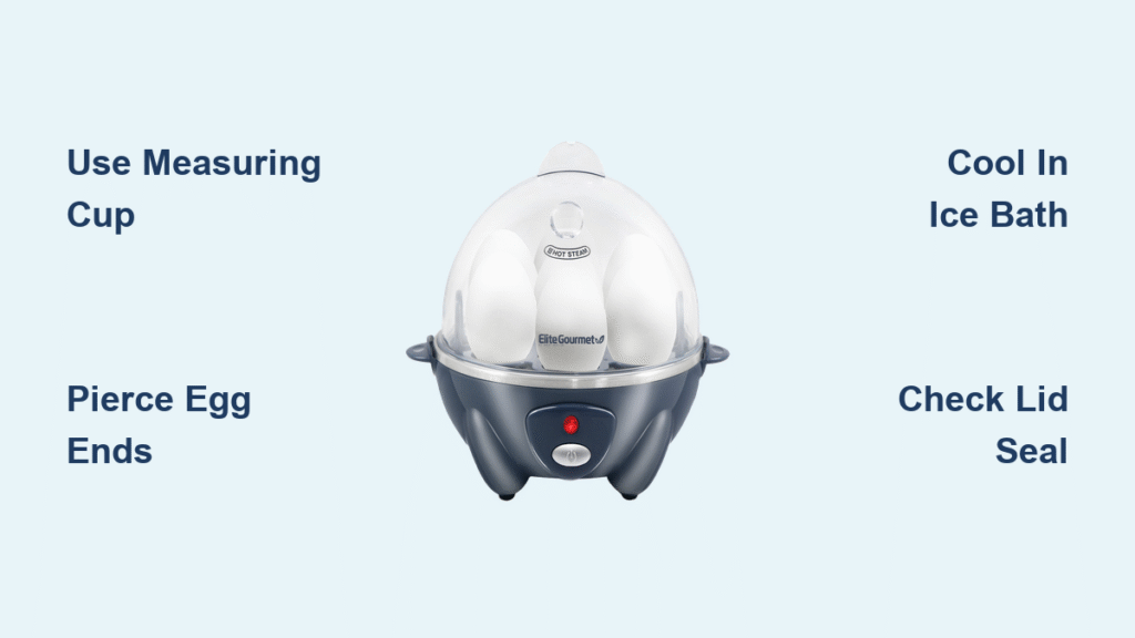 Overcooked or green-ringed yolks: Reduce water by 5ml or remove eggs immediately when the light turns off. Green rings form from iron sulfide compounds created by overcooking—perfectly avoidable with precise timing.