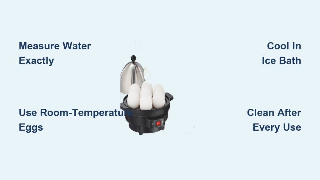 The secret to perfect hard-boiled eggs lies in the included measuring cup. Fill it precisely to the “Hard 7 eggs” line using cold tap water—never estimate. This specific 1/4 cup measurement creates optimal steam pressure for seven large eggs. Using too much water causes overcooking (resulting in green yolks), while too little yields runny centers. For medium eggs, reduce water by 10%; for extra-large, increase by 10% using the cup’s secondary markings.