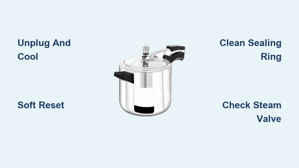 Your pressure cooker suddenly flashes a “burn” warning, refuses to build pressure, or freezes with unresponsive buttons mid-recipe. Before panicking