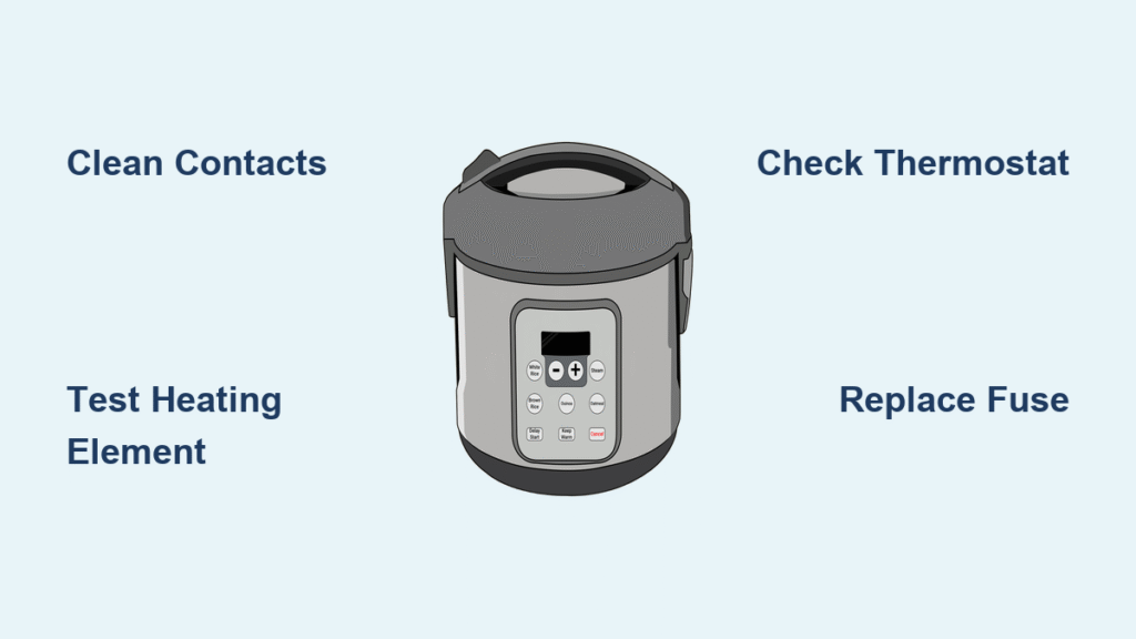 Your rice cooker keep warm not working problem often stems from preventable contact corrosion or a single failed component. By implementing monthly vinegar descaling and limiting keep-warm duration to 30 minutes, you’ll double your unit’s lifespan. For immediate fixes, 70% of failures resolve through contact cleaning or element replacement under $35. Remember: rice held below 60°C for over 2 hours must be discarded—never risk food poisoning for the sake of convenience. When in doubt, replace units showing multiple failure symptoms; modern models under $50 offer superior reliability and safety features that make repairs uneconomical. Keep this guide handy for your next rice emergency—you’ll save time, money, and potentially avoid a food safety crisis.